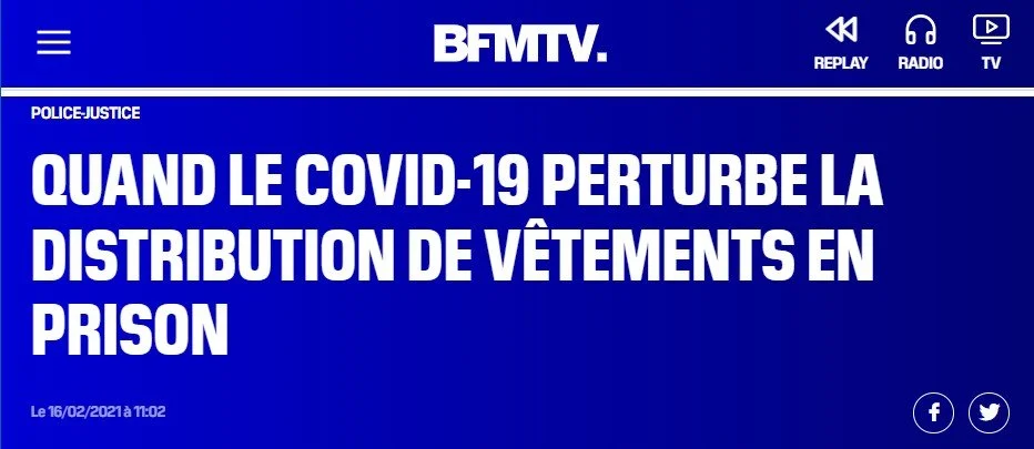 C'est l'un de ces exemples qui a poussé Me Amélie Morineau, avocate et présidente de l'association A3D, l'association des Avocats pour la Défense des Droits des Détenus, à alerter sur les interruptions périodiques de distribution de vêtements et de linge de rechange aux détenus par leurs familles en raison des mesures sanitaires liées à l'épidémie de Covid-19. A Fresnes, cette interdiction a duré trois semaines, jusqu'au 9 février. A Tarascon, dans les Bouches-du-Rhône, elle est toujours en cours.
